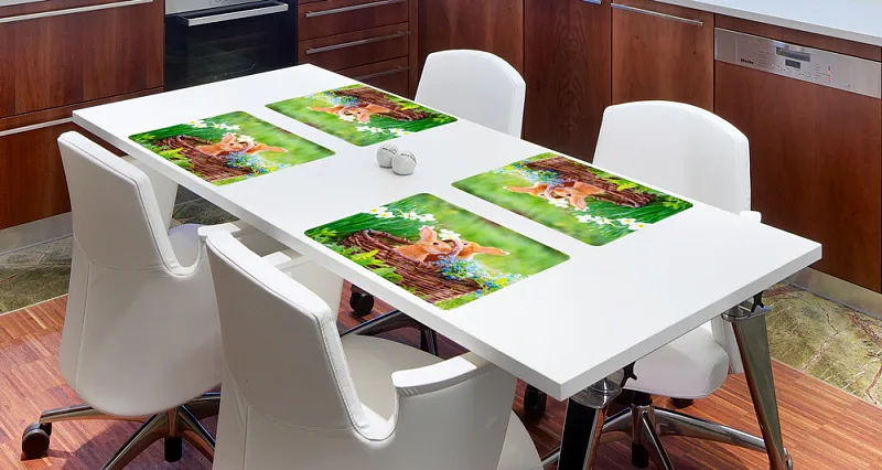 Prostírání KRÁLÍČCI V KOŠÍKU vesele doplní každý okamžik, který strávíte ve své jídelně. Ideální a praktický doplněk pro každodenní stolování.