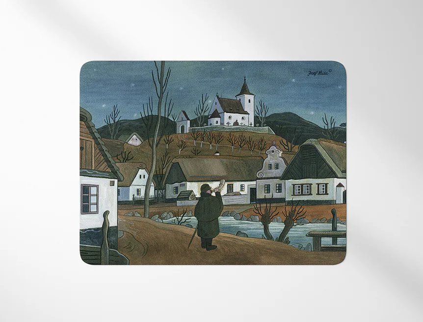 Prostírání z kolekce Josef Lada vnese do vaší jídelny kouzelnou atmosféru. Rozměry: 35x45 cm Materiál: PVC Frontlit - měkký banner s plošnou hmotností 510 g/m2. Matný hladký povrch. Spodní strana...