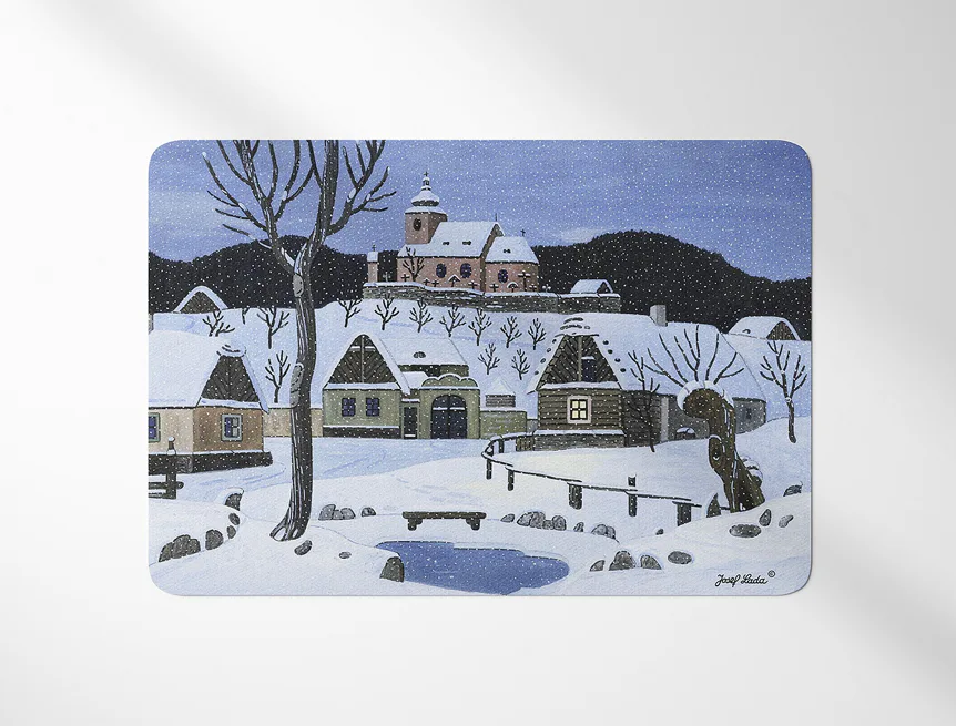 Prostírání z kolekce Josef Lada vnese do vaší jídelny kouzelnou atmosféru. Rozměry: 35x45 cm Materiál: PVC Frontlit - měkký banner s plošnou hmotností 510 g/m2. Matný hladký povrch. Spodní strana...