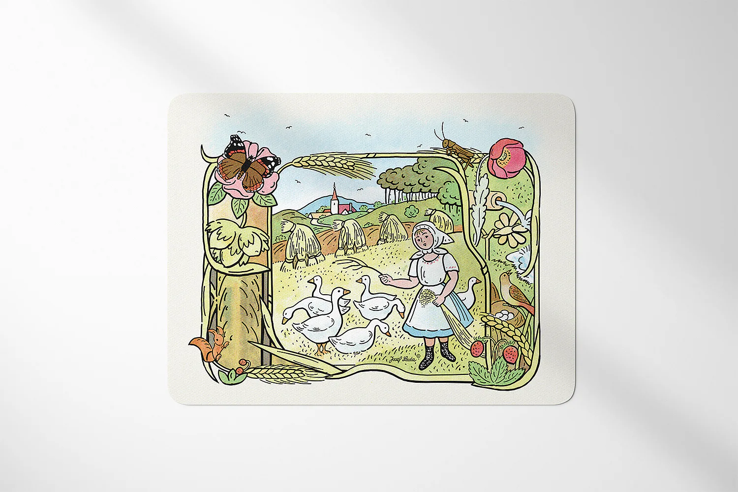 Prostírání z kolekce Josef Lada vnese do vaší jídelny kouzelnou atmosféru. Rozměry: 35x45 cm Materiál: PVC Frontlit - měkký banner s plošnou hmotností 510 g/m2. Matný hladký povrch. Spodní strana...