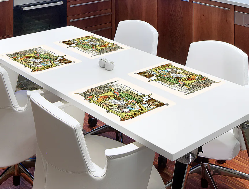 Prostírání z kolekce Josef Lada vnese do vaší jídelny kouzelnou atmosféru. Rozměry: 35x45 cm Materiál: PVC Frontlit - měkký banner s plošnou hmotností 510 g/m2. Matný hladký povrch. Spodní strana...