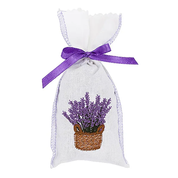 Látkový pytlíček s květinovou výšivkou, fialovou mašličkou a voňavou sušenou levandulí uvnitř potěší každou romantickou duši. Dokonalý tip na drobnou maličkost pro potěšení.