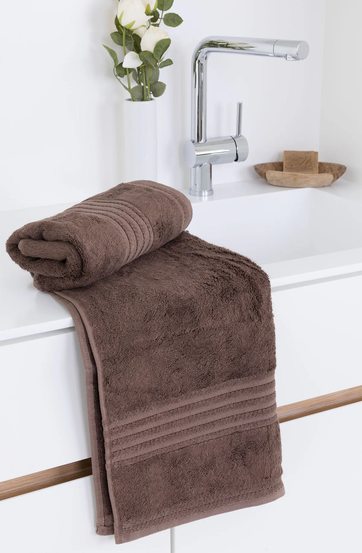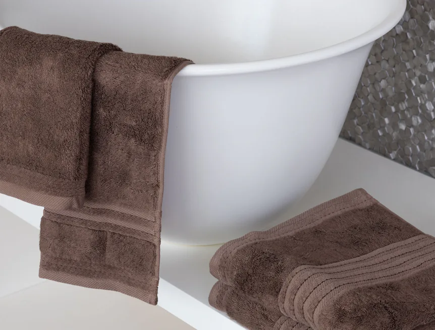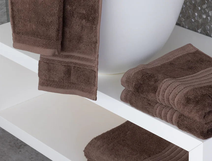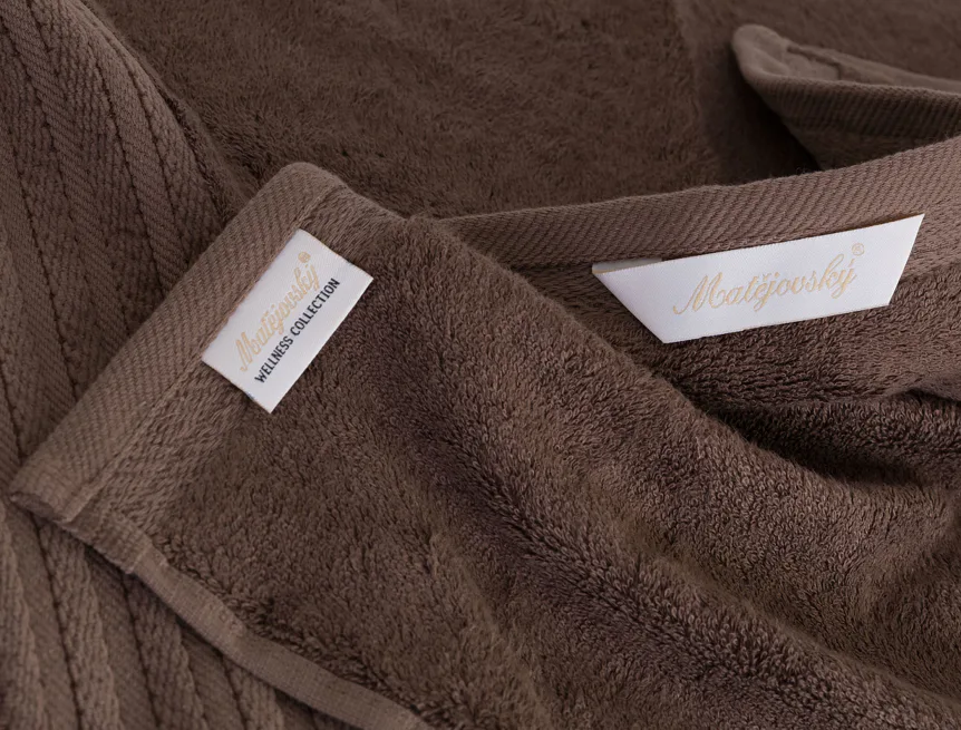 Vybírejte ze tří okouzlujících barev, které působivě doladí interiér vaší koupelny: krémová, béžová a hnědá. Kolekci zdobí decentní bordura tvořená vytkávanými proužky.