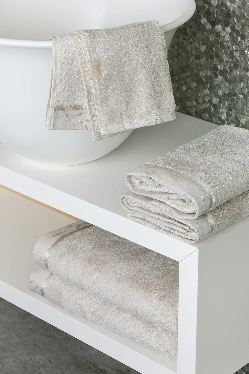 Pro kolekci ručníků a osušek Luna pečlivě vybíráme atraktivní odstíny. Noblesa této wellnes řady je dotažena k dokonalosti jemnou vyšívanou bordurou s motivem bambusových lístků.
