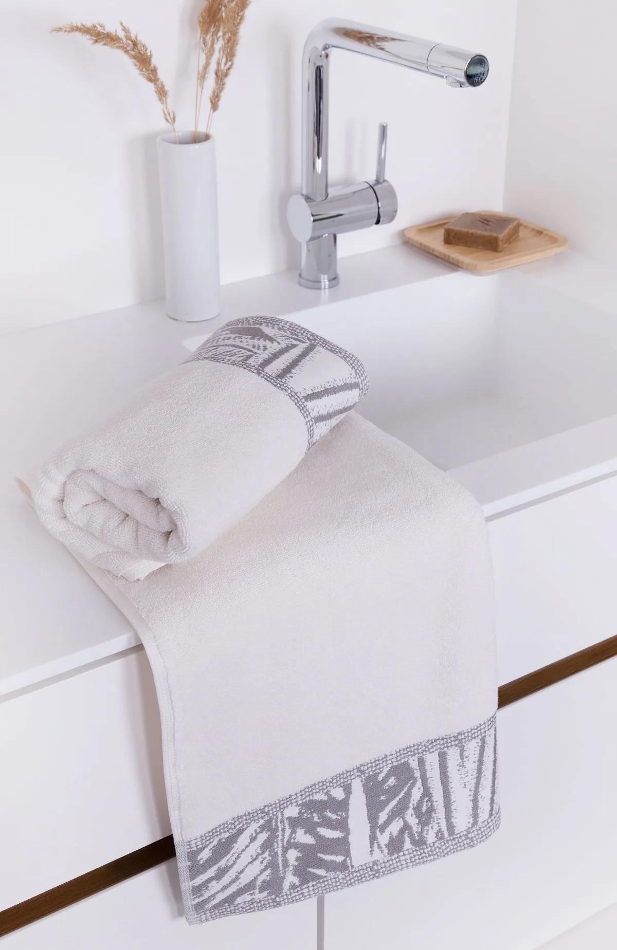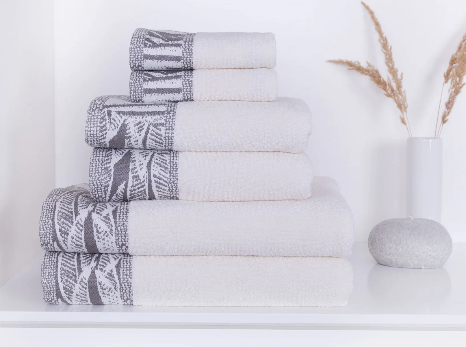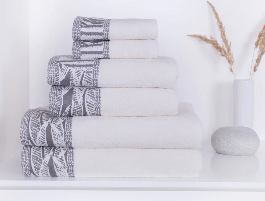 Náš tip: Odstíny ručníků a osušek z kolekce Mara jsme pro vás vybrali tak, aby se mezi sebou daly kombinovat. Světlý ručník má příjemný krémový odstín s šedou bordurou, tmavý ručník má atraktivní popelavě šedou barvu s krémovou bordurou.