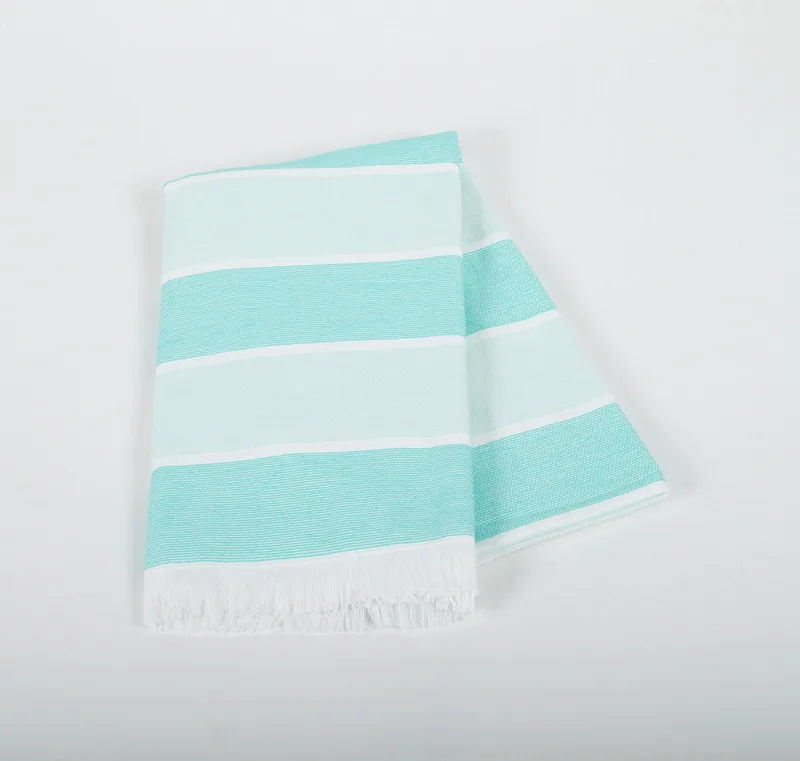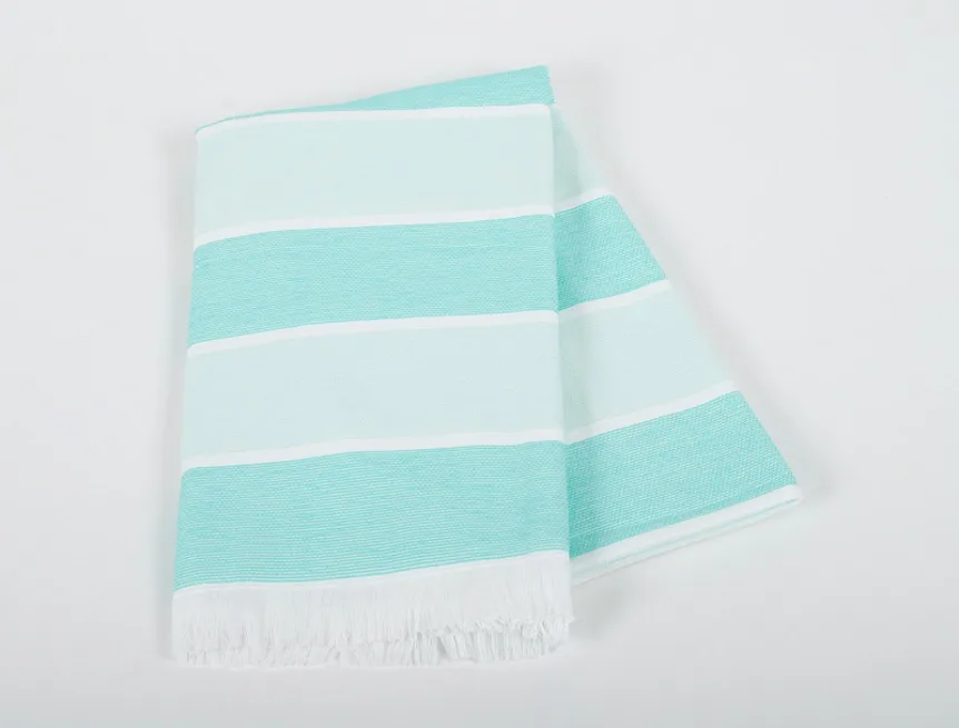 Bavlněná saunová osuška Anika si vás získá moderním designem a hebkým materiálem. Trendy pruhy v odstíhnech světlé a svěží azurové protnuté bílým proužkem zpříjemní chvíle aktivního odpočinku. Užijte si saunování i pobyt u vody s tímto praktickým a stylovým doplňkem.