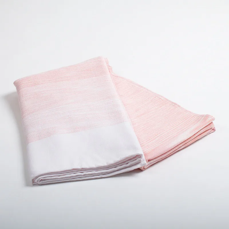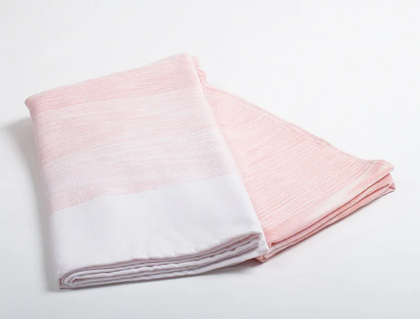 Saunová osuška Granada si vás získá nejen svojí praktičností, ale také jemným designem. Na vrchní hladké straně tvoří vytkané proužky decentní ombré efekt v pastelově oranžovo červených odstínech. Spodní strana osušky je ve znamení hebkého bílého froté, všechny okraje jsou lemované.