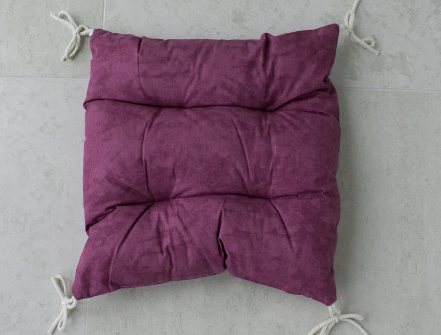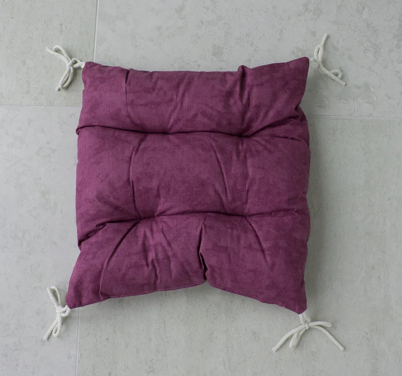 Pohodlný sedák s prošitím, opatřený v rozích tkaničkami pro praktické upevnění k židli. Barevné provedení tzv. mramorová fialová.