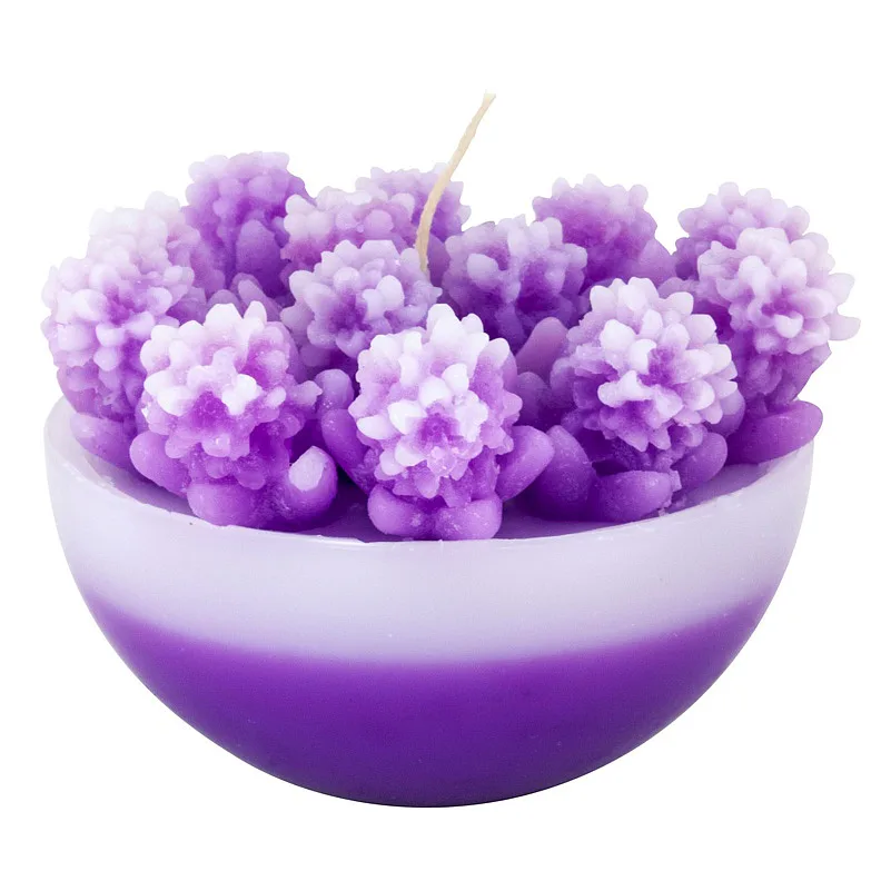 Originální, ručně vyráběná svíčka ve tvaru misky s drobnými kvítečky v odstínu fialkové barvy je skvělým tipem na dárek pro každou romantickou duši. Svíčka je dodávána v průhledném dárkovém balení.