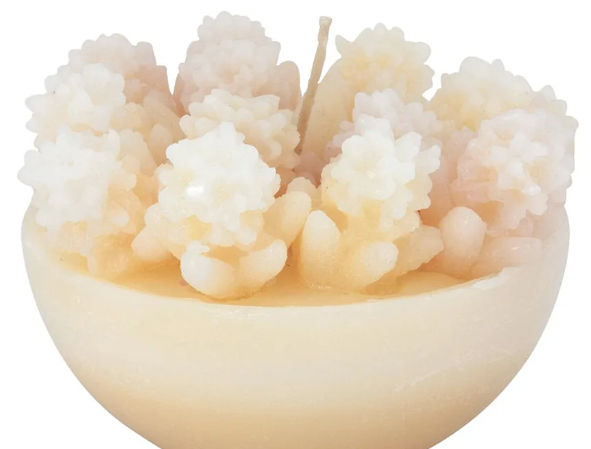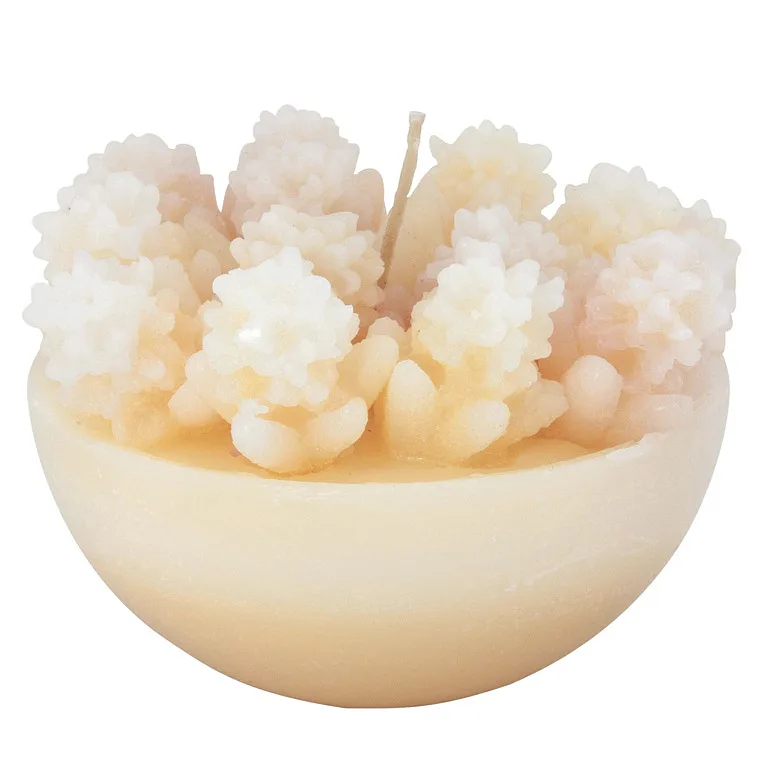 Originální, ručně vyráběná svíčka ve tvaru misky s drobnými kvítečky v odstínu krémové barvy je skvělým tipem na dárek pro každou romantickou duši. Svíčka je dodávána v průhledném dárkovém balení.