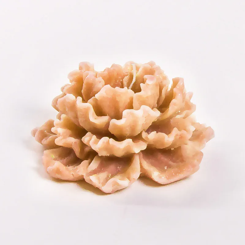Originální, ručně vyráběná vonná svíčka ve tvaru pivoňkového květu v pastelovém odstínu oranžové barvy je skvělým tipem na dárek pro každou romantickou duši. Svíčka je dodávána v průhledném dárkovém balení.