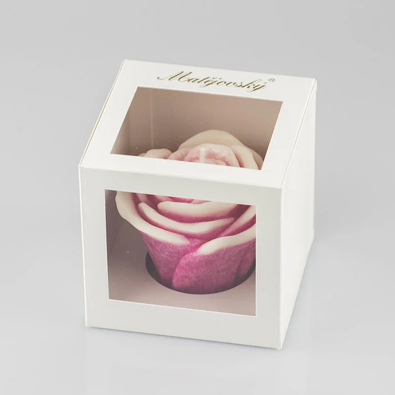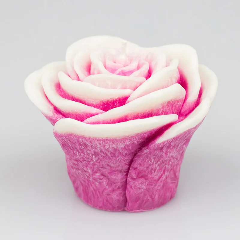 Ručně vyráběná svíčka ve tvaru květu růže v barvě růžové, s jemnou mramorovanou texturou je skvělým tipem na dárek pro každou romantickou duši. Květinová svíčka je vyrobena z kvalitního palmového vosku s jedním bavlněným knotem, odhořívá plynule a nekouří. Originální vzhled svíčky je doplněn sladkou ovocnou vůní, která se uvolňuje hořením.