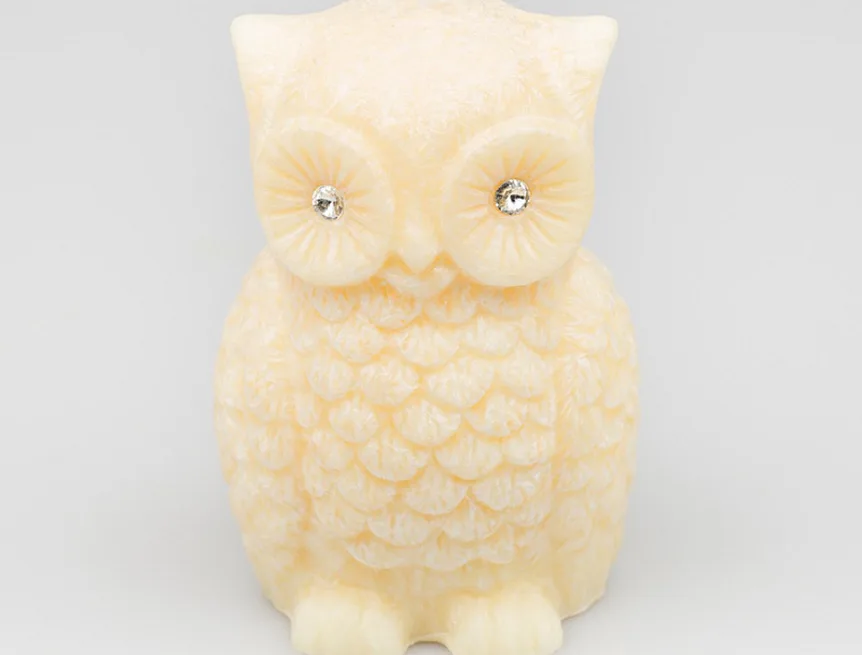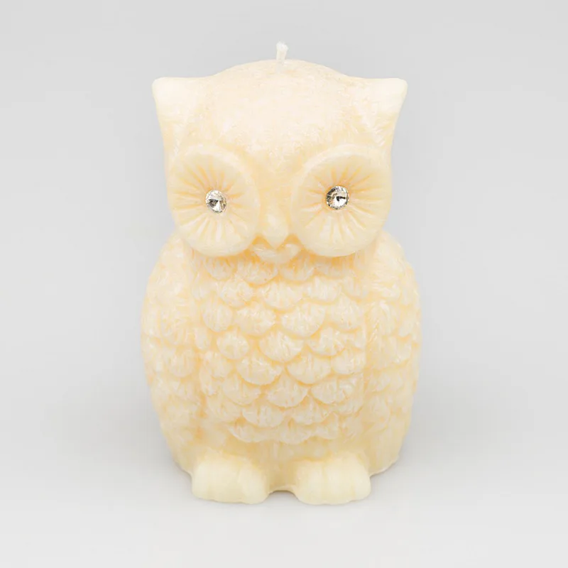 Ručně vyráběná svíčka ve tvaru sovičky v pastelovém odstínu jemné meruňkové barvy s jemnou mramorovanou texturou je skvělým tipem na originální dárek. Svíčka zdobená kamínky Swarovski je vyrobena z kvalitního palmového vosku a má jeden bavlněný knot. Trendy vzhled svíčky je doplněn sladkou ovocnou vůní. Dodáváme v elegantní dárkové krabičce.