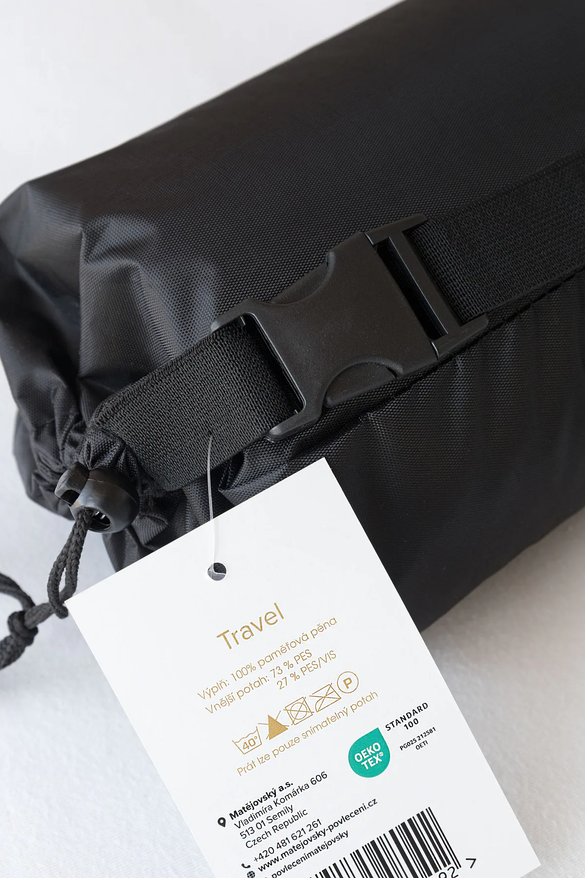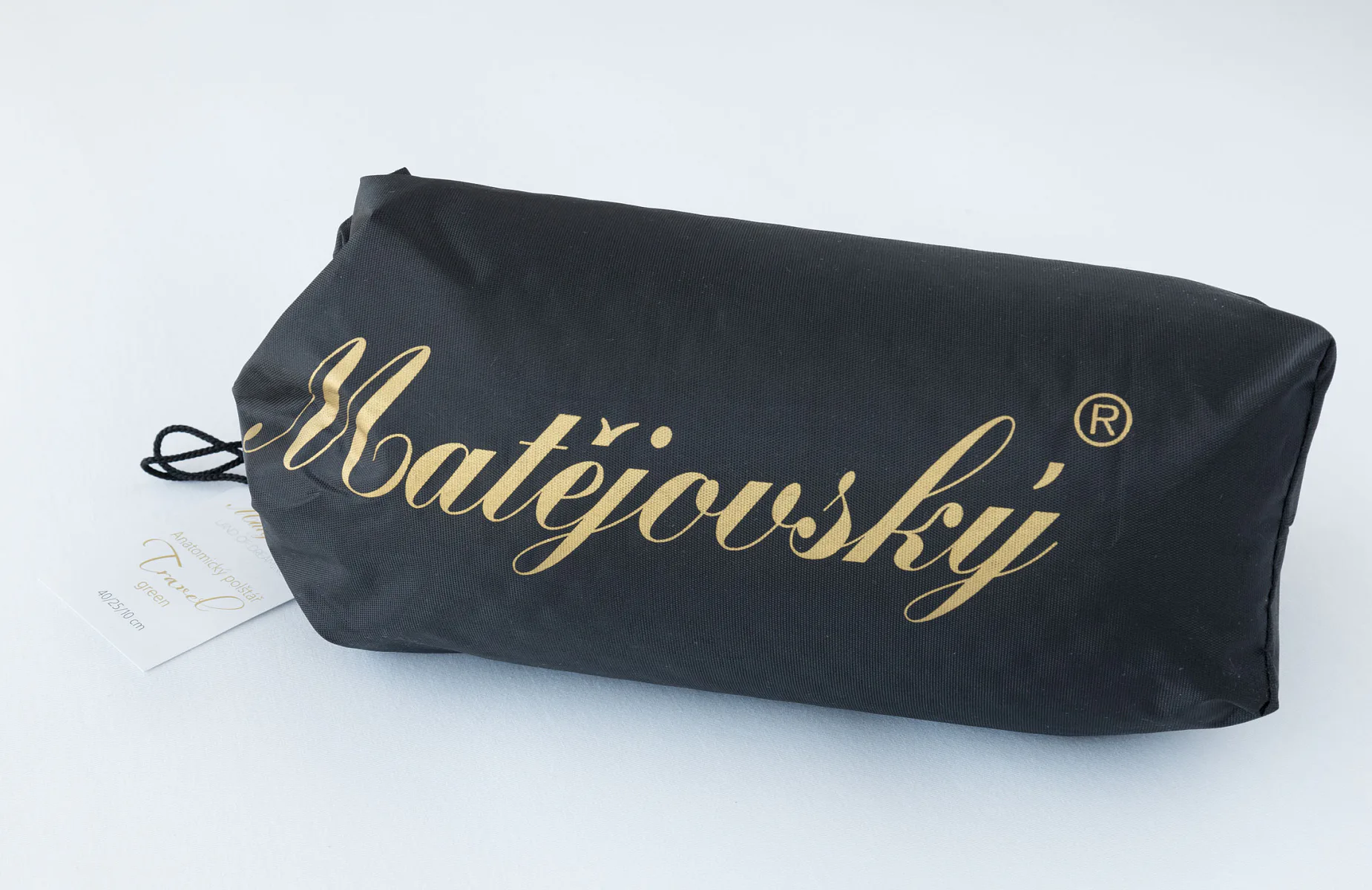 Balení: Anatomický polštář je balený v praktickém cestovním sáčku černé barvy s logem Matějovský.