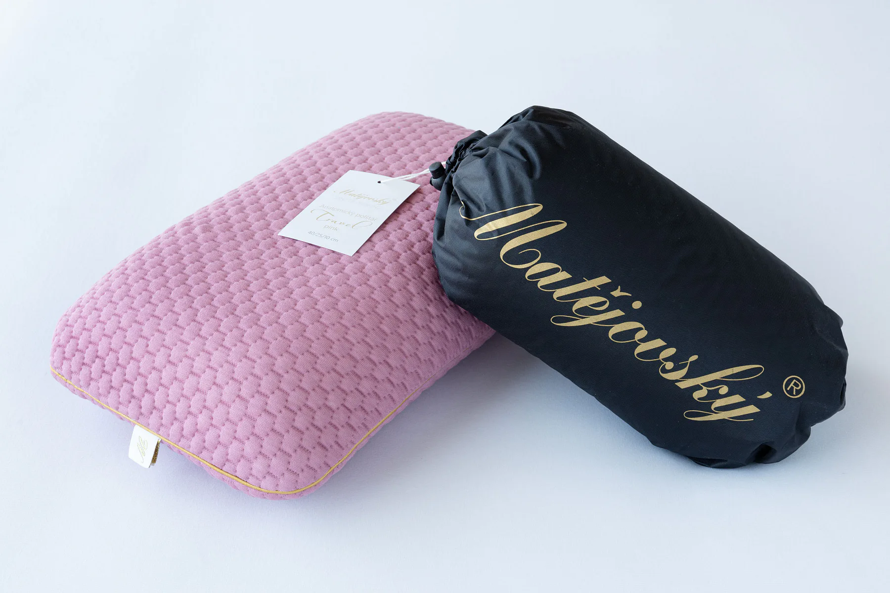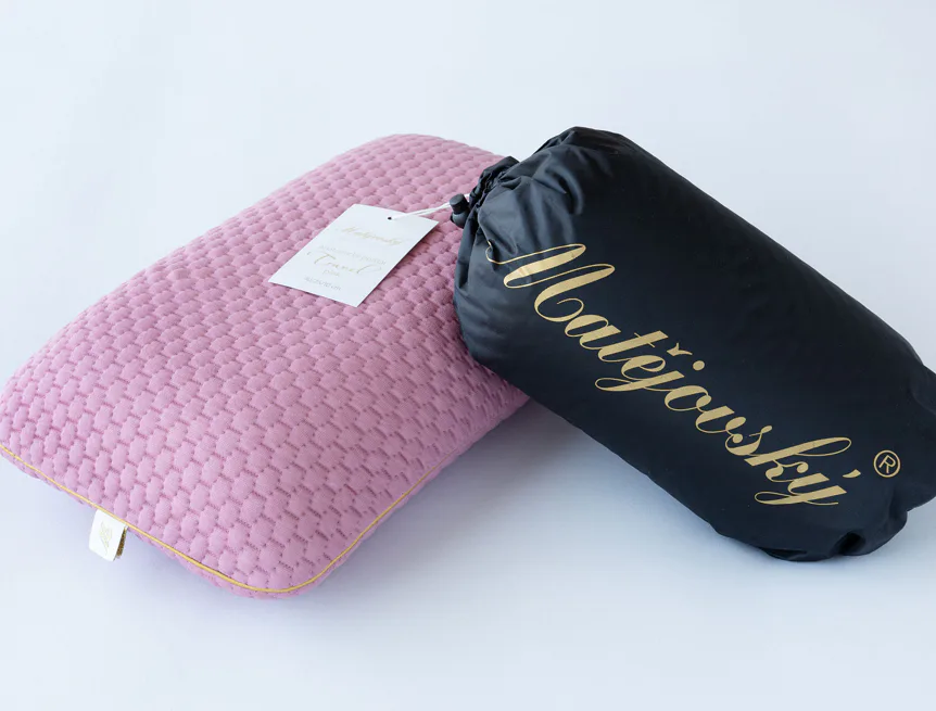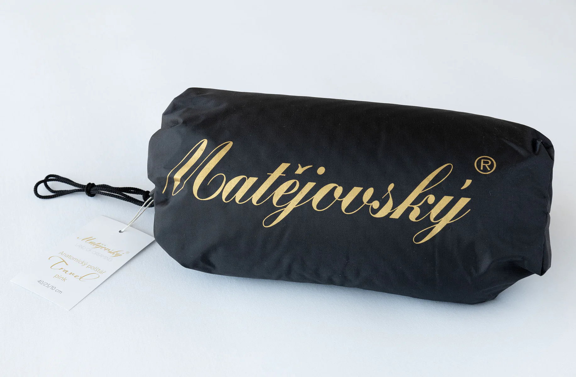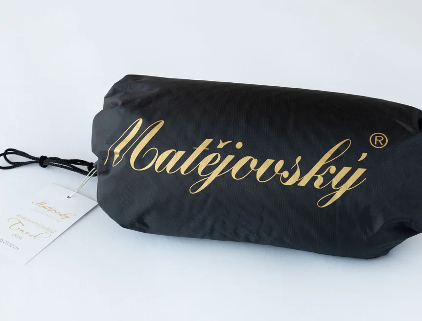 Balení: Anatomický polštář je balený v praktickém cestovním sáčku černé barvy s logem Matějovský.