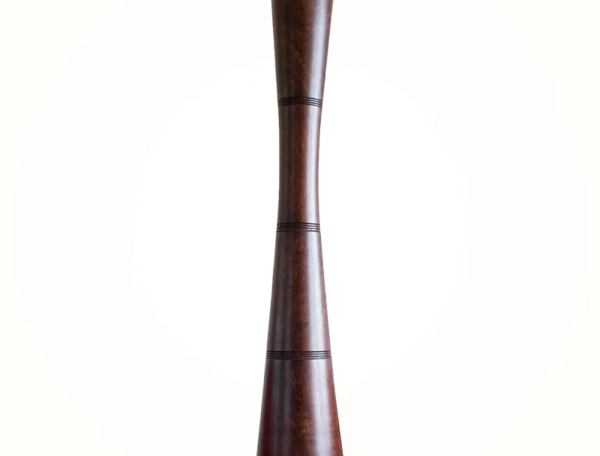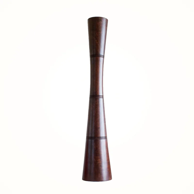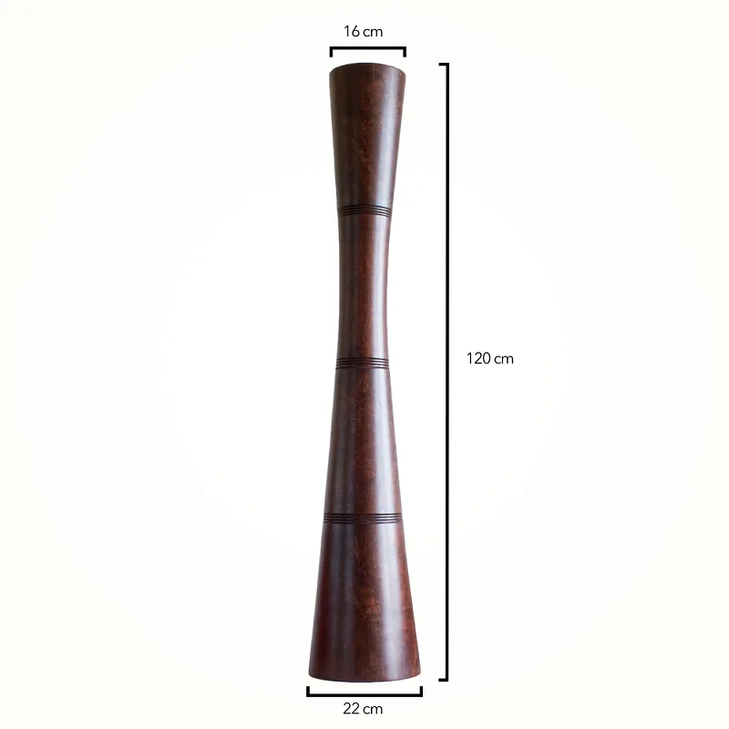 Stylová dřevěná dekorační váza je vyrobena z ručně zpracované tropické dřeviny. Etno styl dodává váze exotický vzhled. Povrch vázy je namořen do odstínu tmavého ořechu.