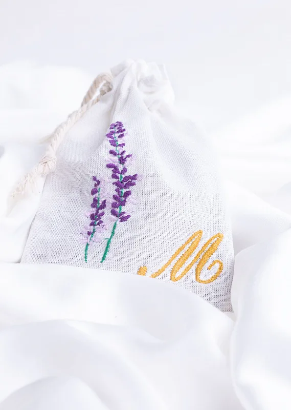 Levandulový sáček, který potěší také jako milý a praktický dárek, zdobí decentní výšivka.