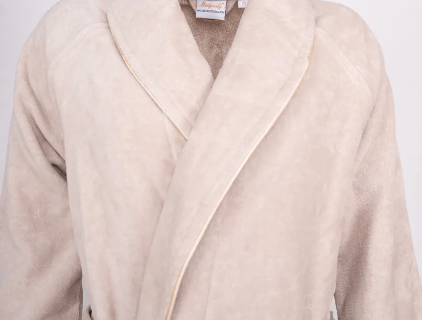 Župany jsou vyrobeny ze 100% prvotřídní bavlněné příze, povrchovou úpravu tvoří hebké smyčkové froté. Přírodní materiál je zárukou jedinečného komfortu, precizní zpracování zaručí dlouhou životnost výrobku. Elegantní vzhled celé kolekce podtrhují jemné pastelové barvy doplněné v čelním lemu zlatavou paspulí.