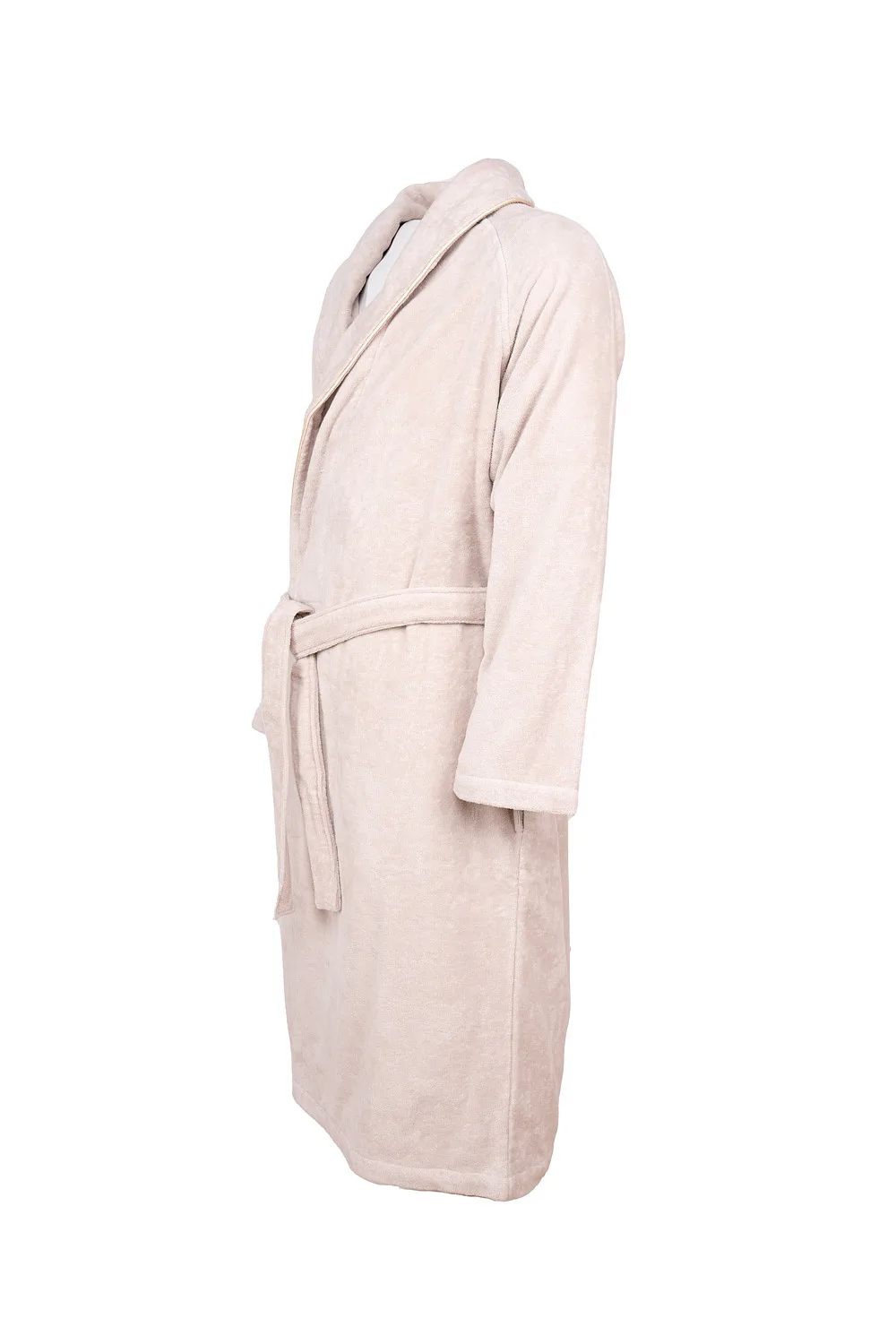 Župany jsou vyrobeny ze 100% prvotřídní bavlněné příze, povrchovou úpravu tvoří hebké velurové froté. Přírodní materiál je zárukou jedinečného komfortu, precizní zpracování zaručí dlouhou životnost výrobku. Elegantní vzhled celé kolekce podtrhují jemné pastelové barvy doplněné v čelním lemu zlatavou paspulí.